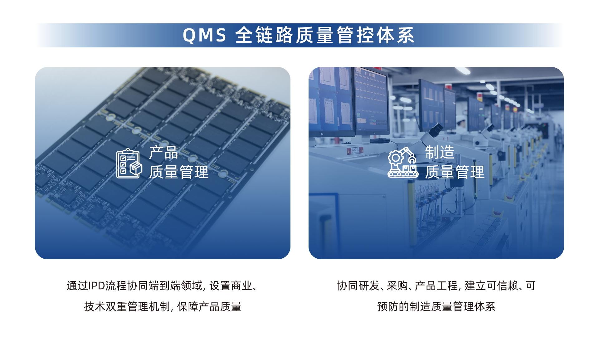 - 动态品控体系:协调产业链端到端领域,建立可信赖、可预防的制造质量管理体系,实现从晶圆筛选到终端交付的全链路品质追溯。