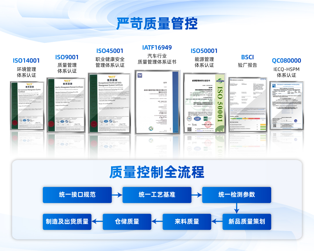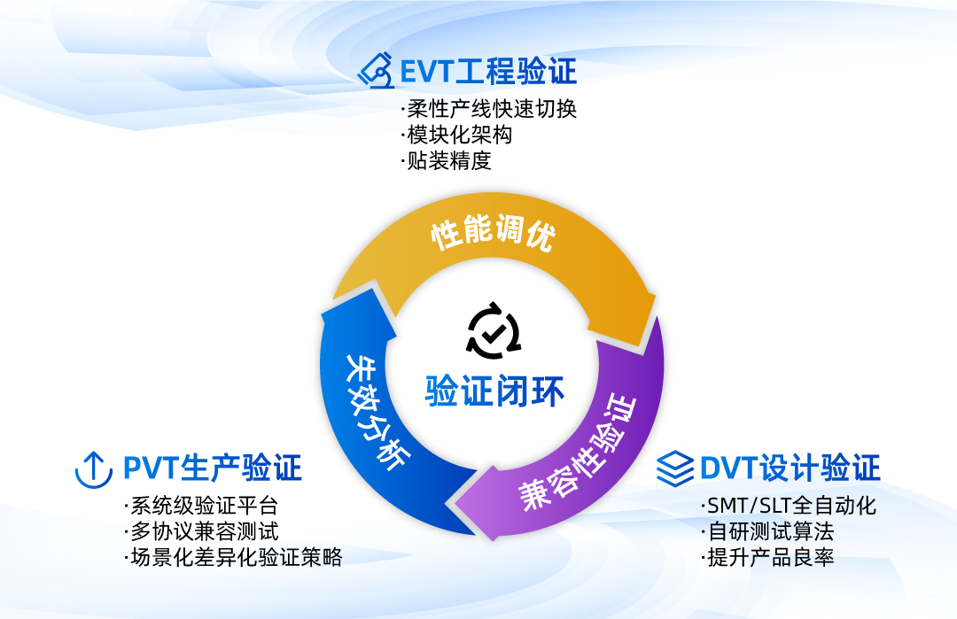 制造基地内配备全自动SMT生产线和自动化测试线,支持多品类并行生产,依托自动化测试ATE、SLT平台及批量验证改进方案,关键工序切换时间缩短至分钟级,贴装精度控制在180–200μm,保障批量生产的一致性。