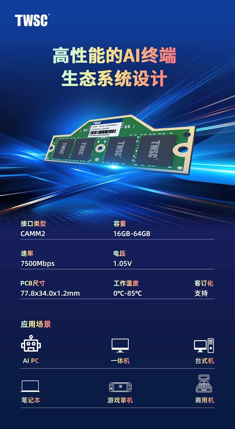 高性能、大容量和低功耗LPCAMM2赋能AI设备迈入全新的“超能时代’下次你拿起智能设备,不妨思考:在AI的辅助下,你将如何解锁自己的“Next Level”?现在,就让我们与智能的浪潮同步,迎接变革!